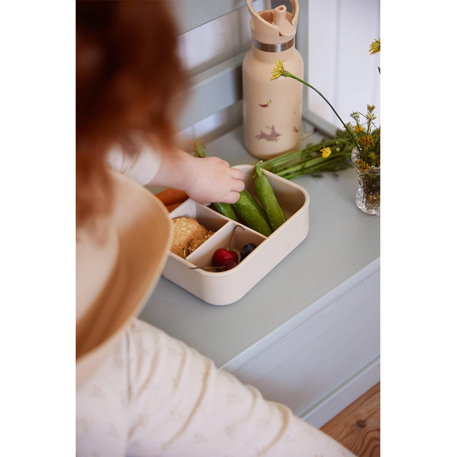 Die niedliche Brotdose von Filibabba aus 100 % weichem, lebensmittelechtem Silikon ist der perfekte Begleiter für Kinder unterwegs. Mit 700 ml Fassungsvermögen und drei getrennten Fächern bleiben Snacks schön sortiert, wie Kinder es lieben.