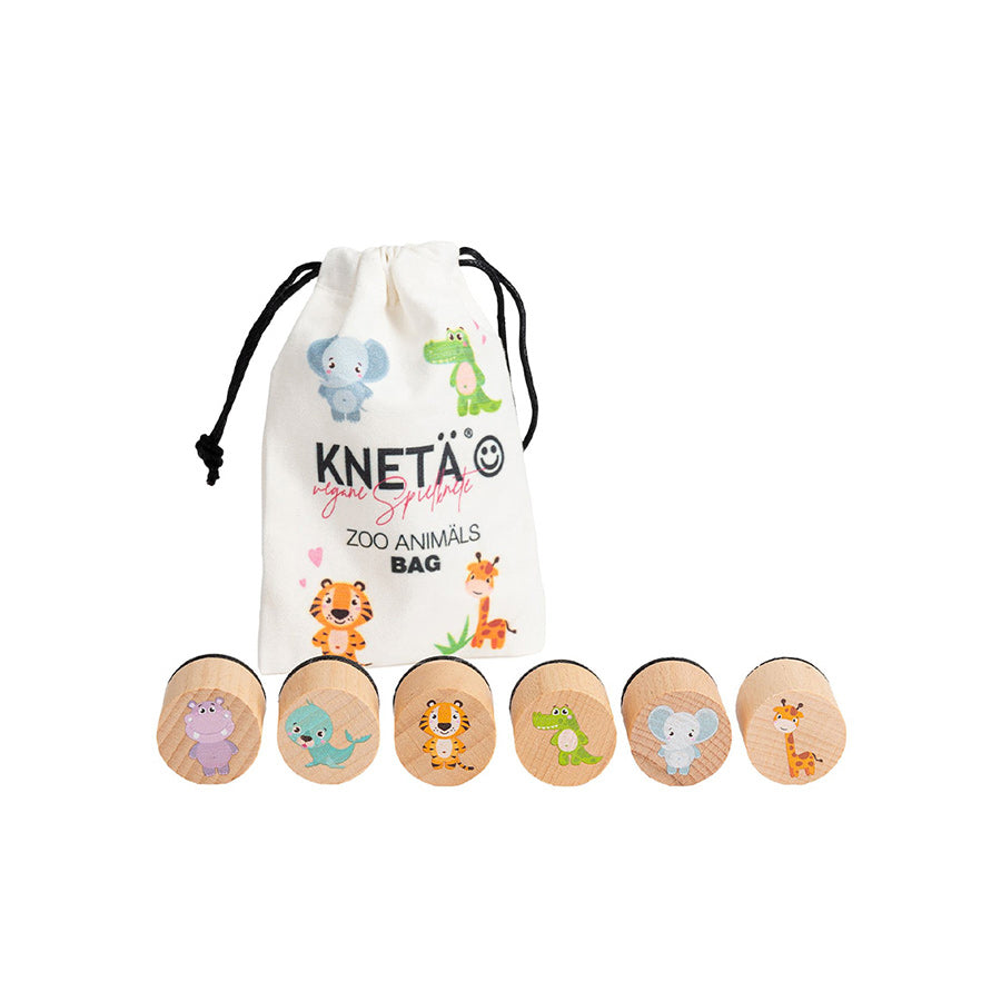 Die sechs Stempel werden in einem Baumwollbeutel geliefert und sorgen für noch mehr Knetspaß.