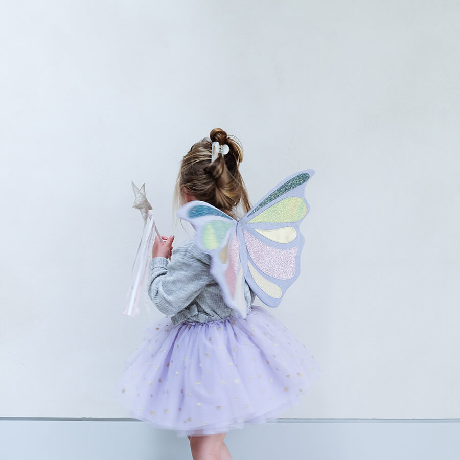Mit diesen hübschen Schmetterlingsflügeln von Mimi & Lula kann sich dein Kind schnell und einfach wie ein Schmetterling verkleiden und herumschweben.