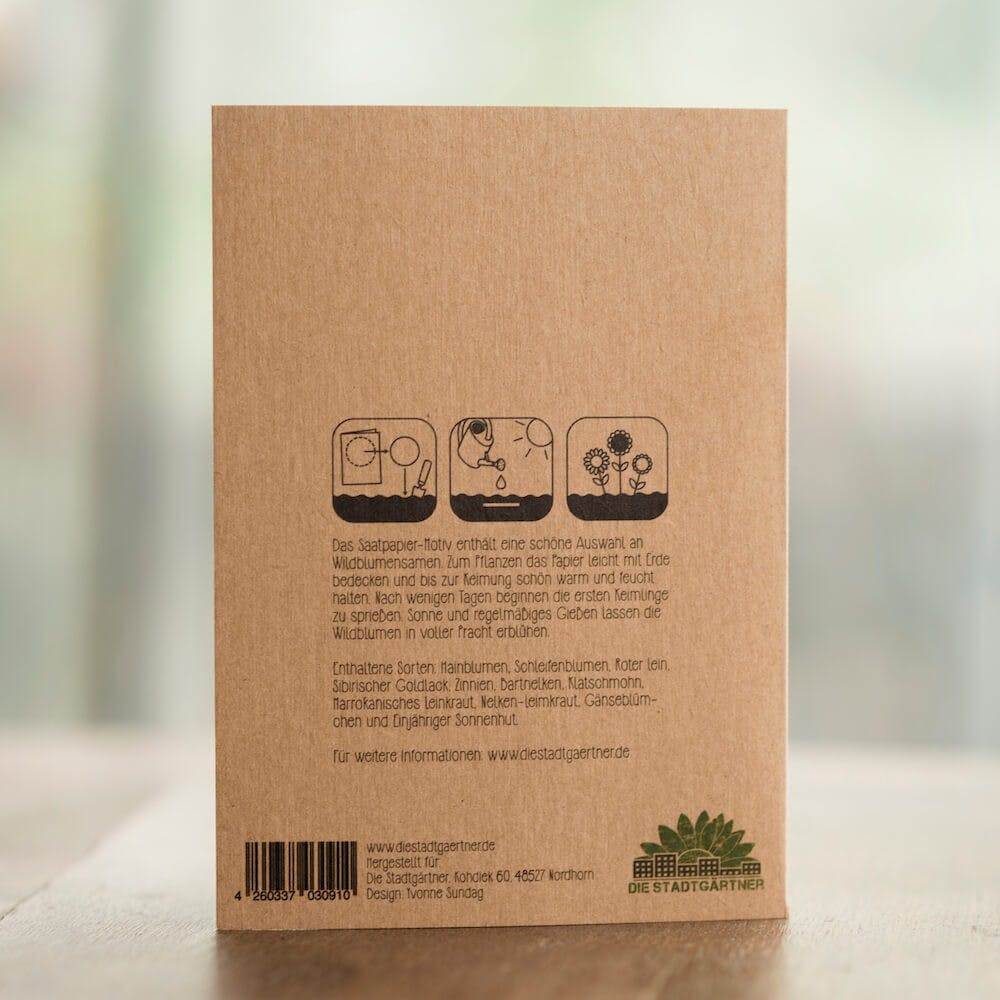 Grußkarte aus der Saatpapeterie. Mit ablösbarer Form aus Saatpapier. Einfach auf die Erde legen, gießen und Wildblumen genießen.