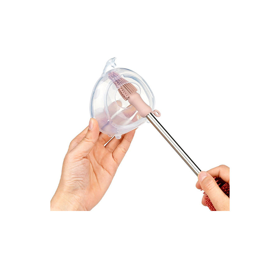 Die Silikonbürste von Haakaa mit zwei Enden verfügt über weiche und flexible Silikonborsten, die eine 360'-Reinigung all deiner Haakaa Produkte ermöglichen.