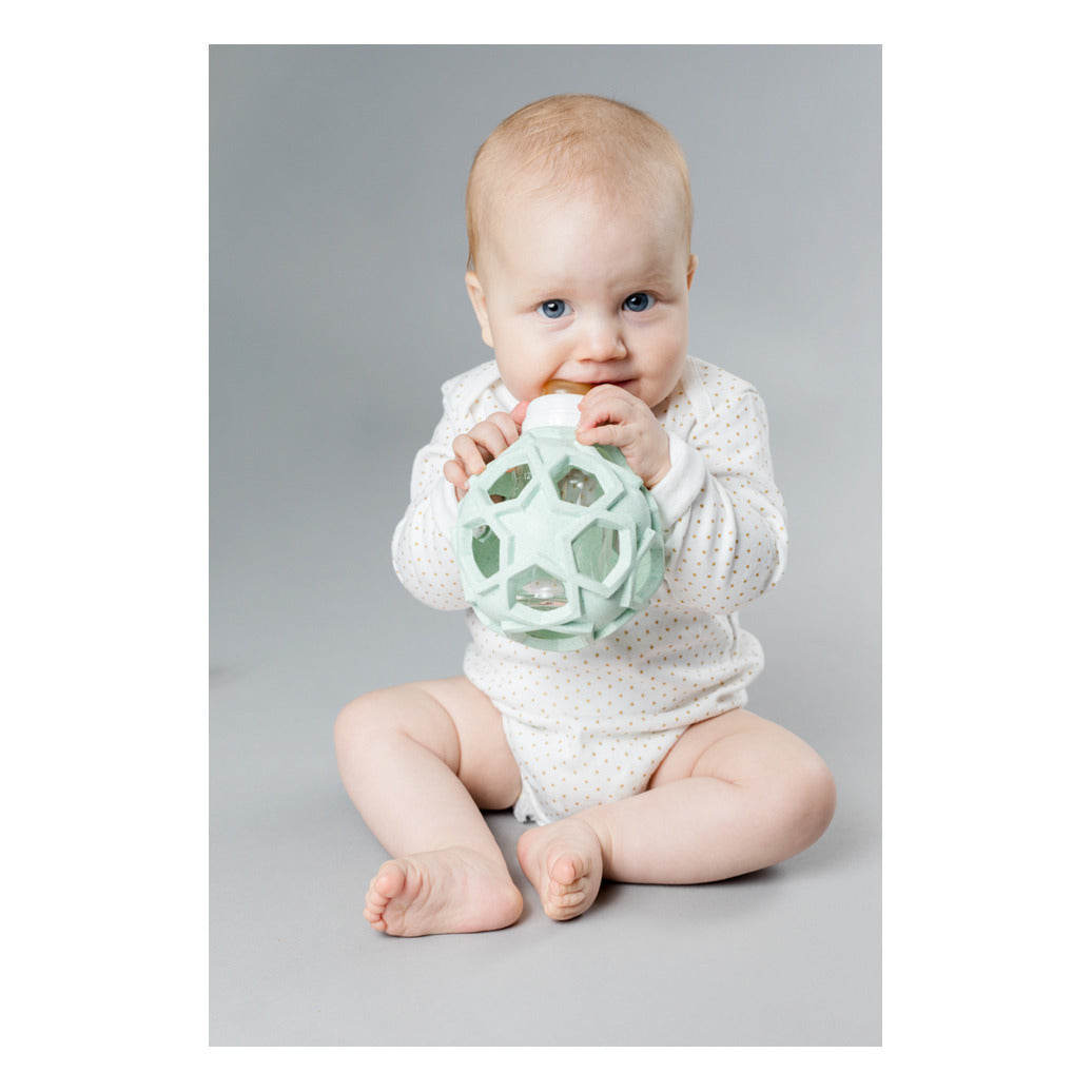 Ohne das Fläschchen dient der Star Ball als vielseitig einsetzbares Spielzeug von Geburt an. Er besteht zu 100% aus weichem upcycled Naturkautschuk und fördert durch seine Form die Motorik und den Tastsinn des Babys.