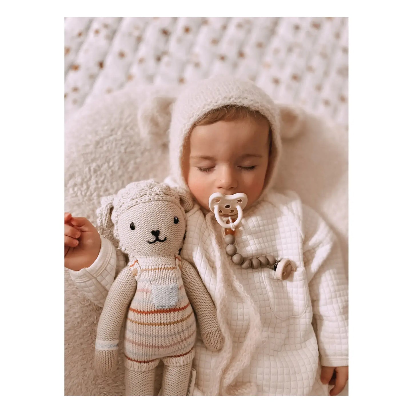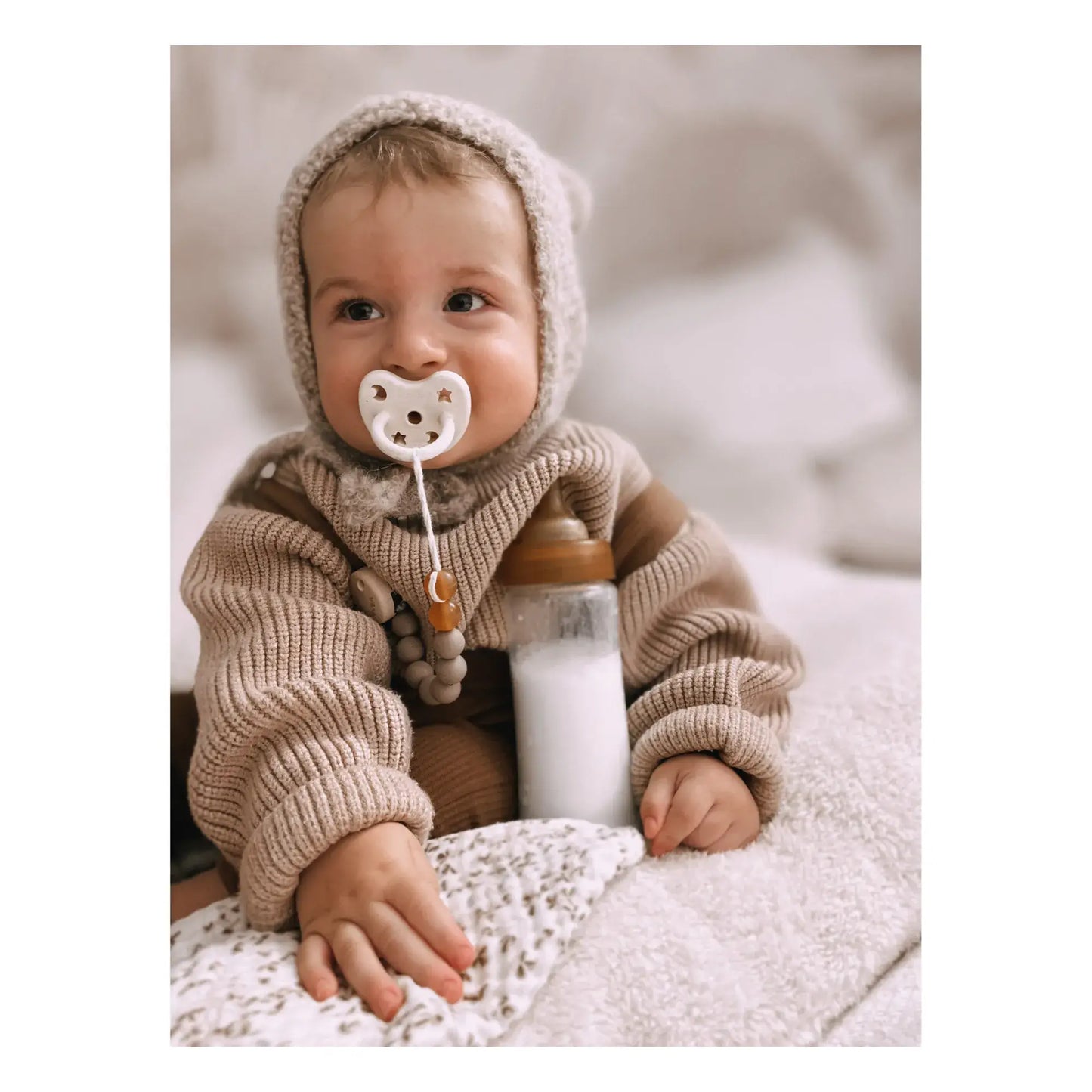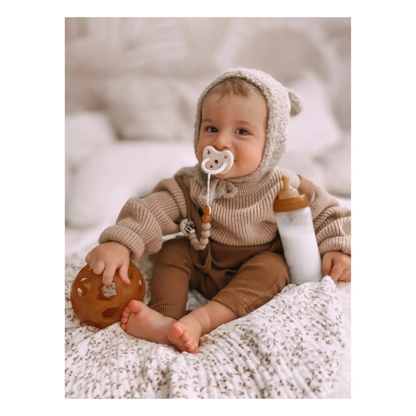Die schönen Schnullerketten von Hevea sind handgefertigt und vegan. Sie bestehen aus 9 weichen Naturkautschukperlen, die mit einem starken, nickelfreien Holzclip befestigt werden. So sind sie sicher für kleine Knabberer und wunderbar anzufühlen für kleine Händchen.