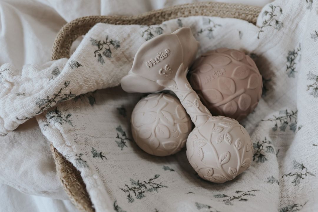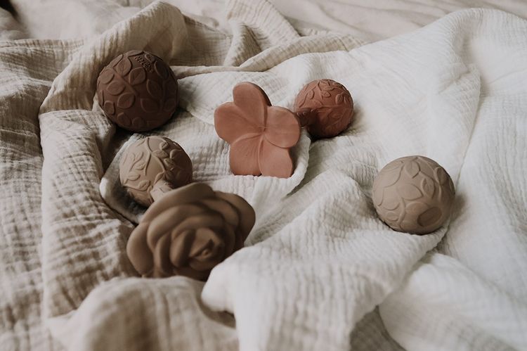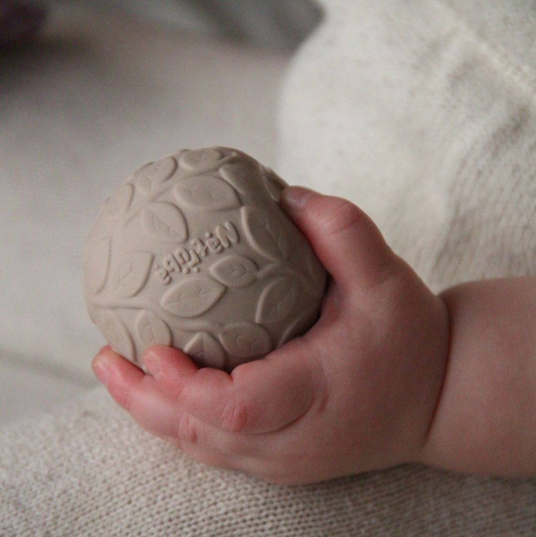 Hübsche Greifbälle mit Blattmuster „Leaf Earth“ aus 100% Naturkautschuk, handgefertigt von Natruba.
