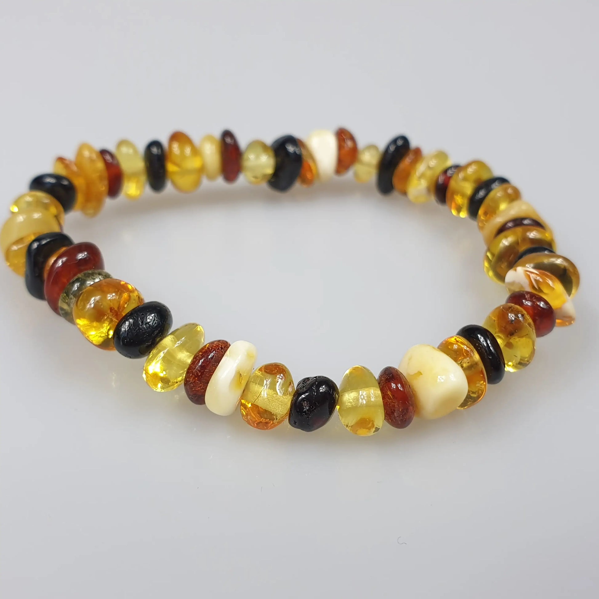 Handgeknüpftes Bernsteinarmband aus baltischem Bernstein auf Gummizug.