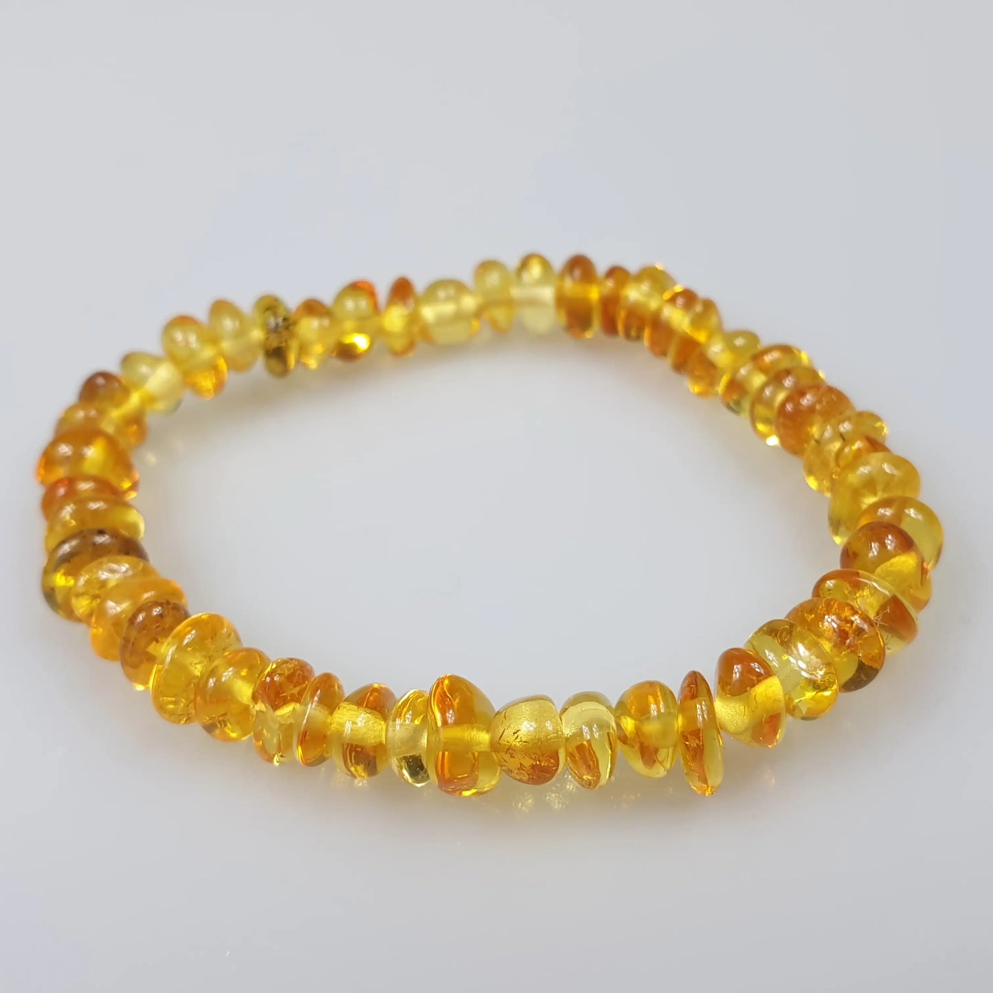 Handgeknüpftes Bernsteinarmband aus baltischem Bernstein auf Gummizug.