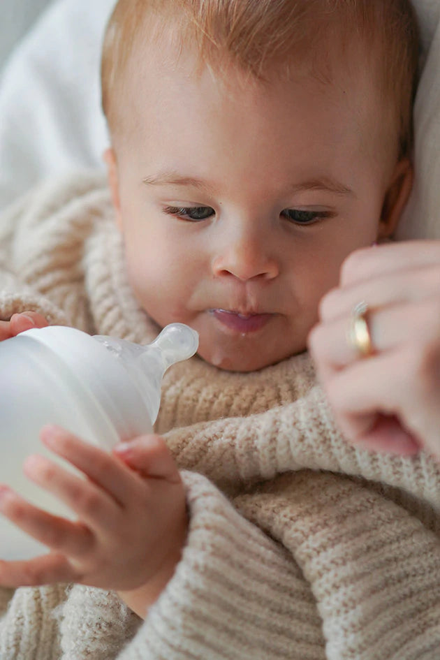 Die Flexibilität der Flasche und die weiche Textur ist annähernd ähnlich dem Trinken aus der Mutterbrust. Ein toller Übergang vom Trinken aus der Brust zur Flasche wird dadurch ermöglicht. Der Sauger hat eine anatomische Form und ein Entlüftungssystem, welches Säuglingskoliken vorbeugt.