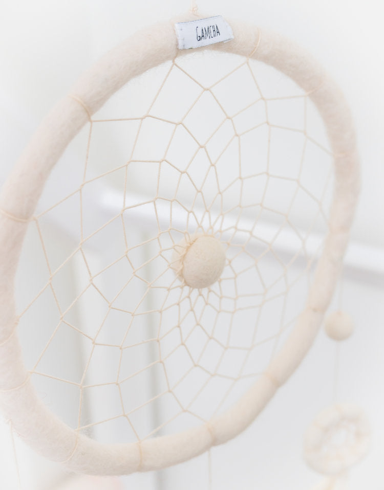 Der wunderschöne Traumfänger von Gamcha wird in liebevoller Handarbeit hergestellt und ist ein perfektes Geschenk zu einer Babyshower, Geburtstag oder als Mutterschaftsgeschenk.