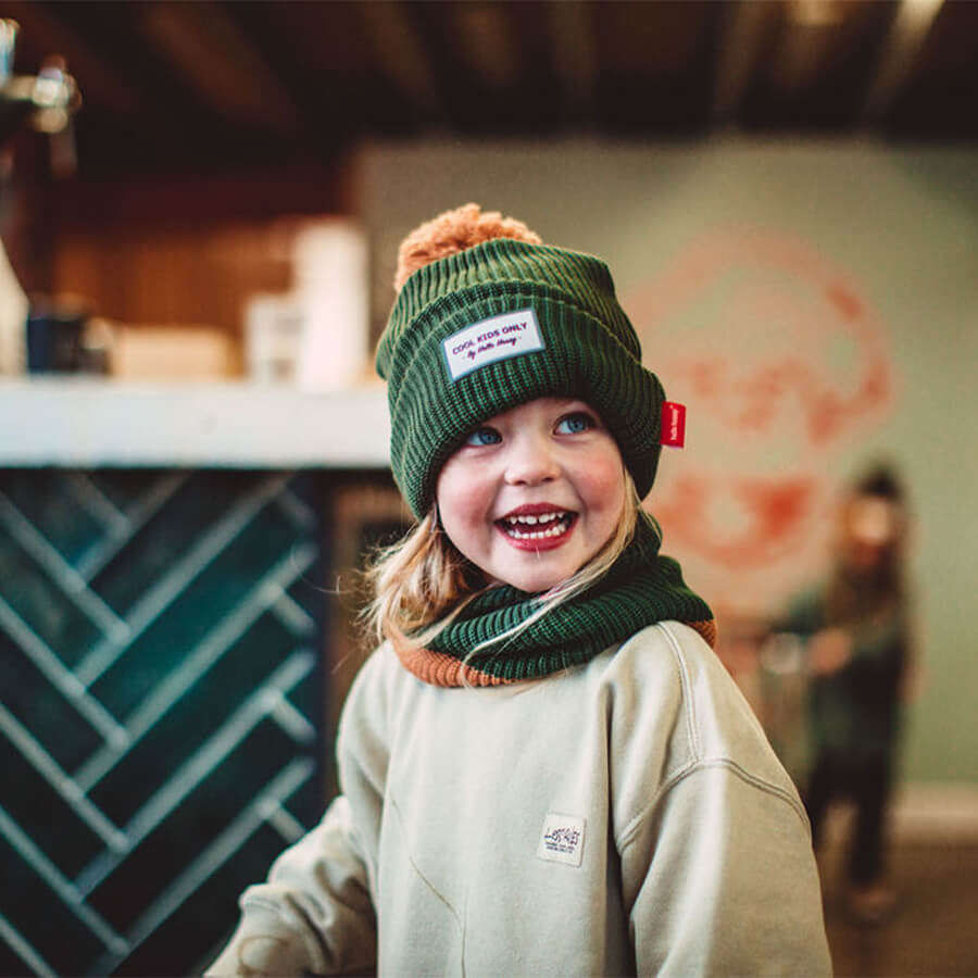 Der Snood von Hello Hossy ist ein mit Fleece gefütterter Schlauchschal für Kinder und Babys. Komfort und Wärme garantiert.