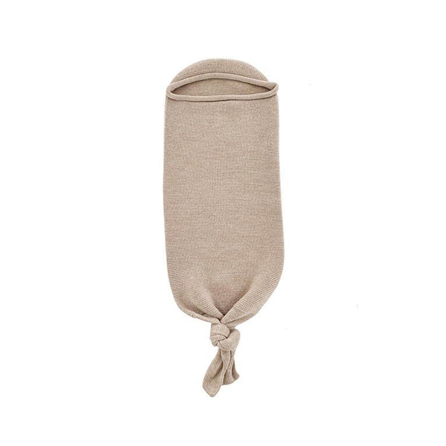 Patentierter wärmender und kuscheliger Baby-Pucksack „Cocoon Sand“ von Hvid, handgestrickt aus feiner italienischer Merinowolle. Er gibt deinem Baby Geborgenheit, hält es kuschelig warm und kann es beruhigen.
