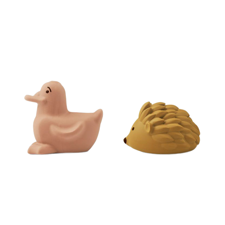 Es ist Badezeit! Mit diesem niedlichen Duo aus der Henrik-Serie von der dänischen Marke Liewood macht das Baden doch gleich doppelt so viel Spaß. Das Badewannenspielzeug-Set setzt sich aus einem ockerfarbenen Igel und einer rosafarbenen Ente zusammen. Die beiden Badetierchen werden aus Naturkautschuk gefertigt und schwimmen lustig auf der Wasseroberfläche. Zusammen sind die beiden ein unschlagbares Team und bescheren deinem kleinen Liebling eine ganz besonders spaßige Badezeit.