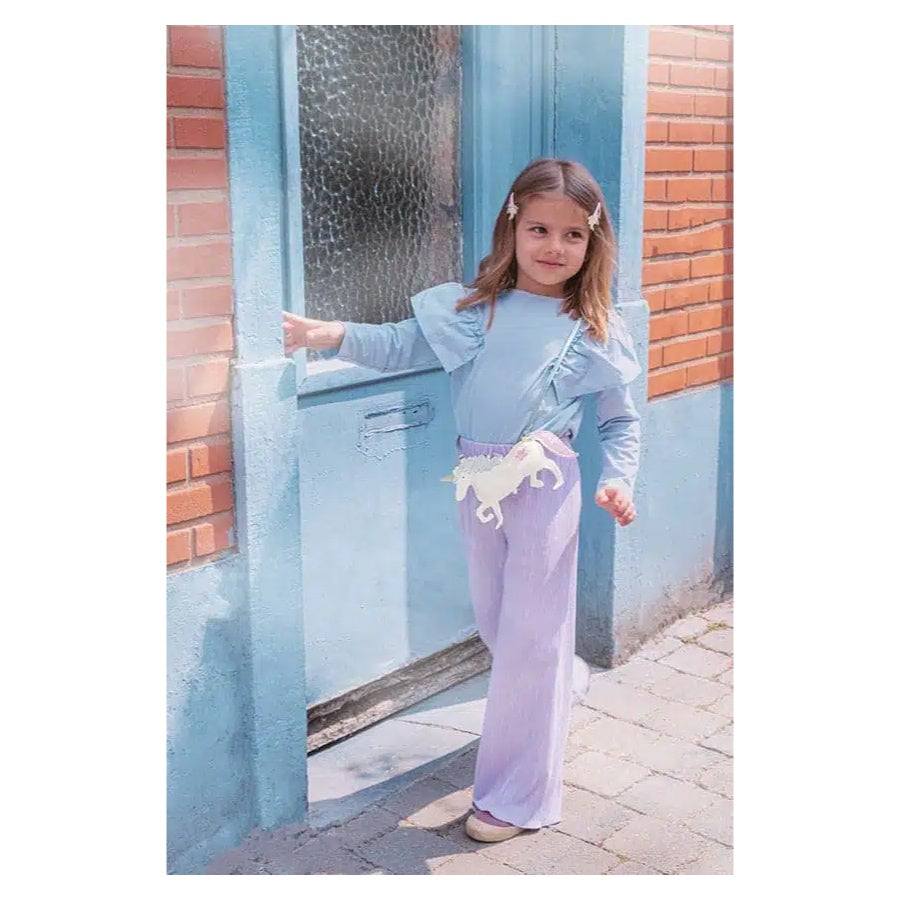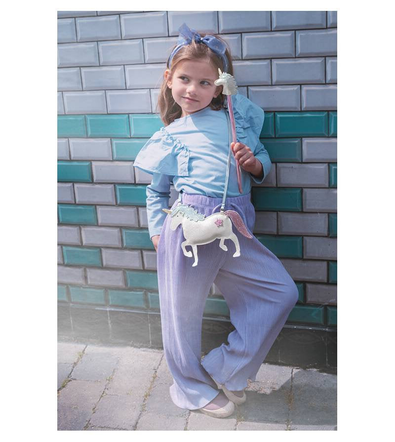 Das glitzernde Einhorn ist ein modischer Begleiter und bietet mit seiner kleinen Reißverschlußtasche Platz für einen Lipbalm oder Schmuck.