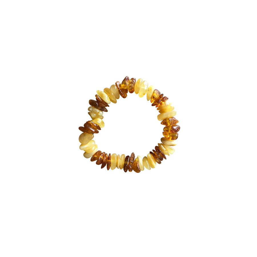 Handgeknüpftes Bernsteinarmband aus baltischem Bernstein auf Gummizug.