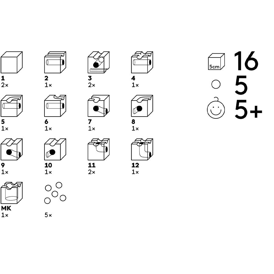 - 16 Bauteile + 5 Kugeln