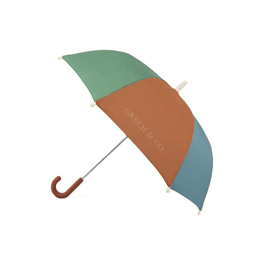 Der zauberhafte Kinderregenschirm von Grech & Co wird aus recycelten Plastikflaschen hergestellt. Er ist in zeitlosen Farben und mit raffinierter Ästhetik gestaltet, und eignet sich für jede Jahreszeit.