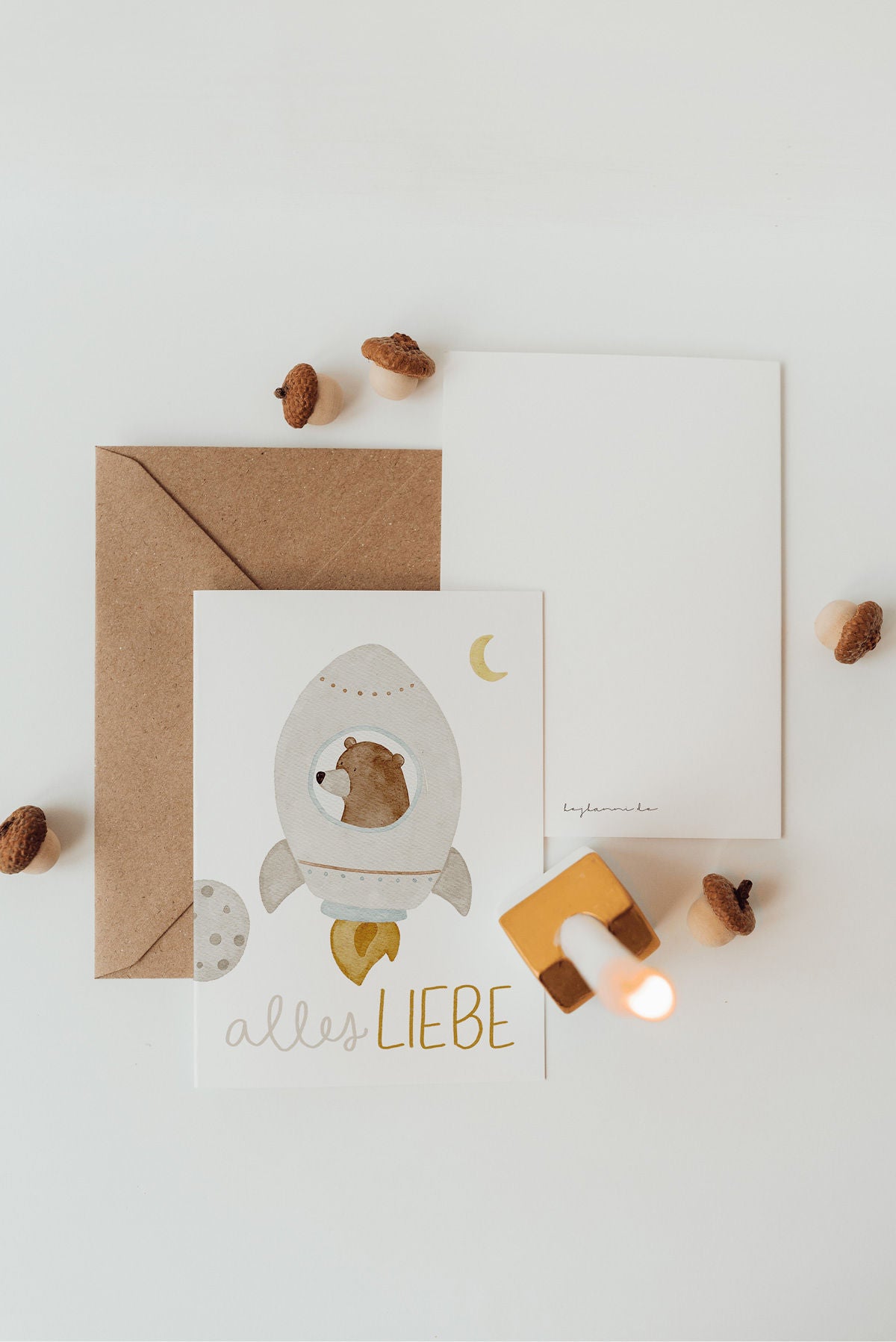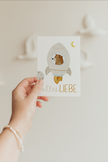 POSTKARTE GEBURTSTAG RAKETENBÄR