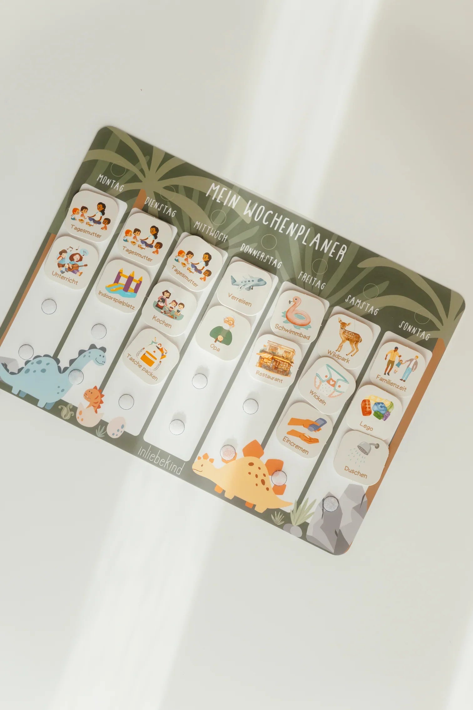Der Wochenplaner von Inliebekind strukturiert den Familienalltag spielerisch und interaktiv und fördert Selbstständigkeit sowie Organisationsfähigkeit von Kindern.