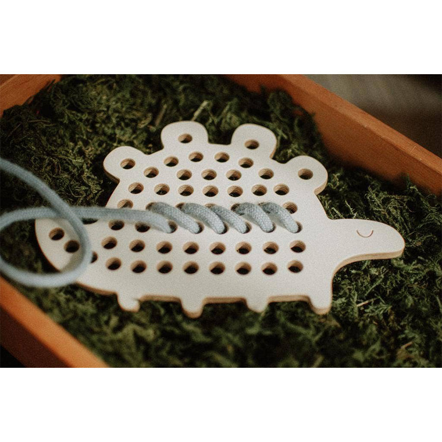 Beim Einfädeln der bunten Schnur durch die Holzfigur trainieren Kinder die Hand-Auge-Koordination, stärken die Konzentration und verbessern ihre Geschicklichkeit – ein ruhiges, pädagogisch wertvolles Spiel für zu Hause und unterwegs.