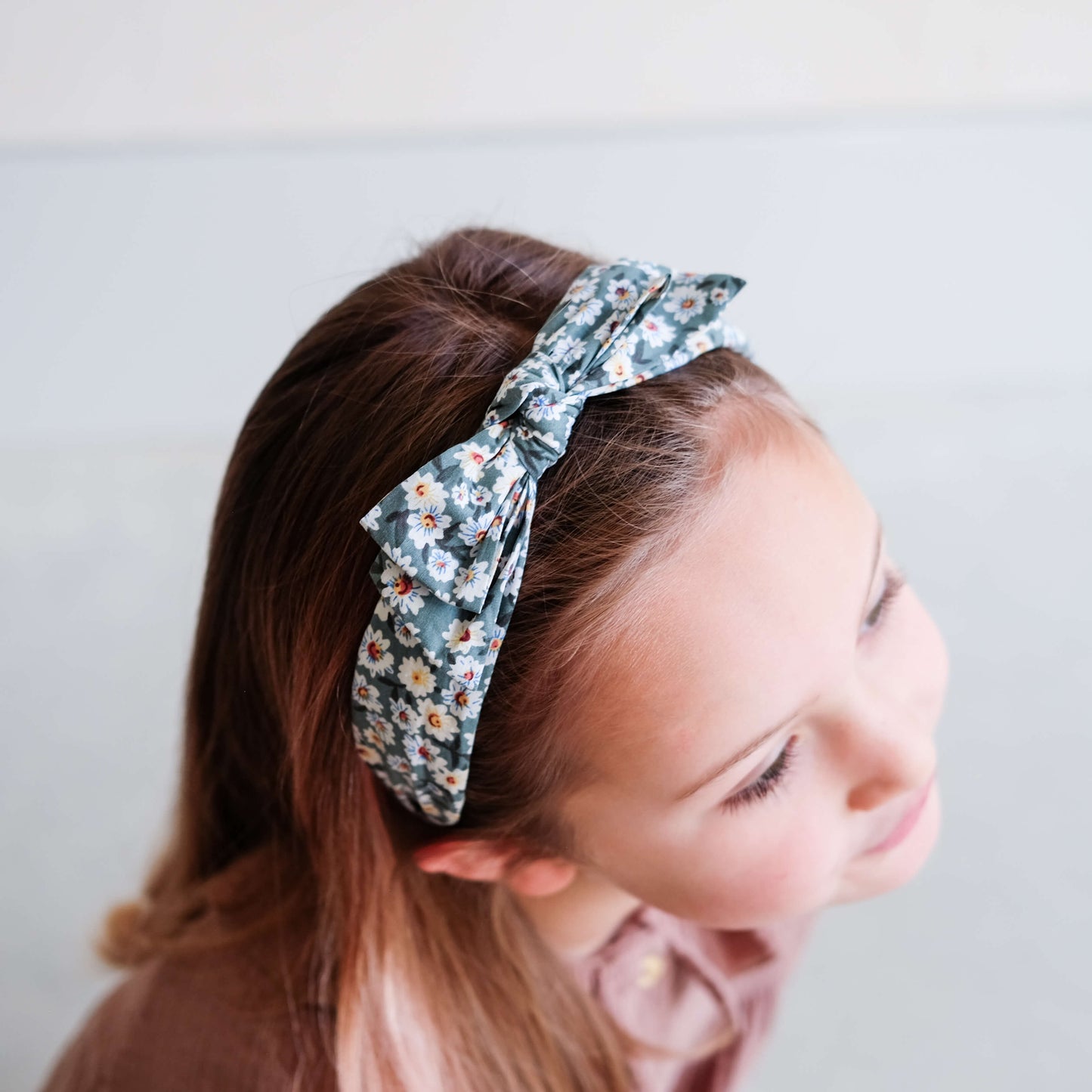 Der Haarreif mit Schleife ist mit schönem Stoff aus Bio-Baumwolle ummantelt, wodurch er zu einem tollen Hingucker wird und Frisuren schick ergänzt.