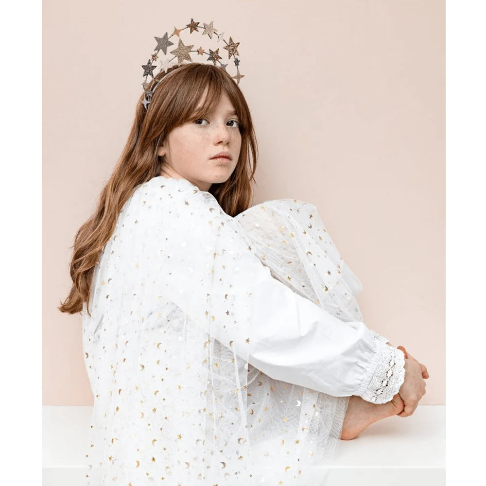 Der wunderschöne Glitzer Umhang "Angel Cape" von Mimi & Lula sieht einfach nur zauberhaft und magisch aus. Er besteht aus einem weichen Tüll mit goldenen Schmetterlingen.