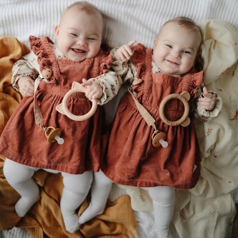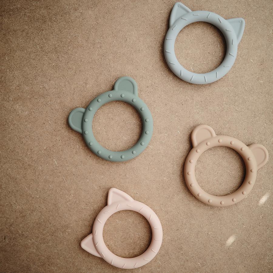 Das süße Design und die angenehme Farbe machen den Beißring zu einem hübschen Accessoire, das Babys Spaß macht und sie beschäftigt.