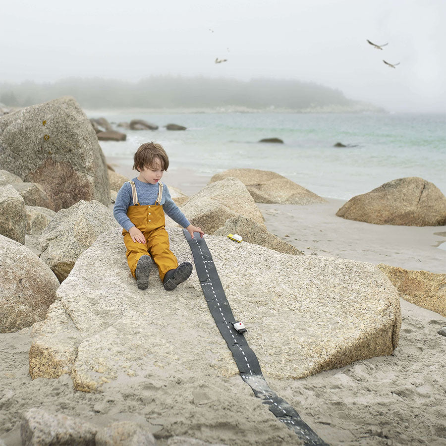 Hergestellt aus hochwertigem, sicherem Gummi, fördern die leicht zu verbindenden Straßenabschnitte das phantasievolle Spiel. Kurz, kurvenreich oder gerade, der Phantasie sind keine Grenzen gesetzt.